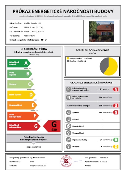 | Ukazatel ENB | 384 kWh/m2 za rok |